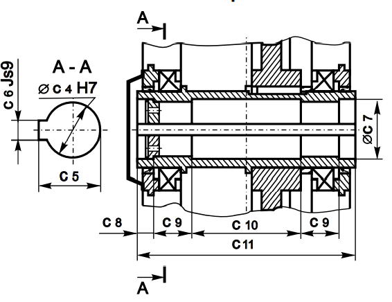 Размеры полного тихоходного вала со шпоночным пазом